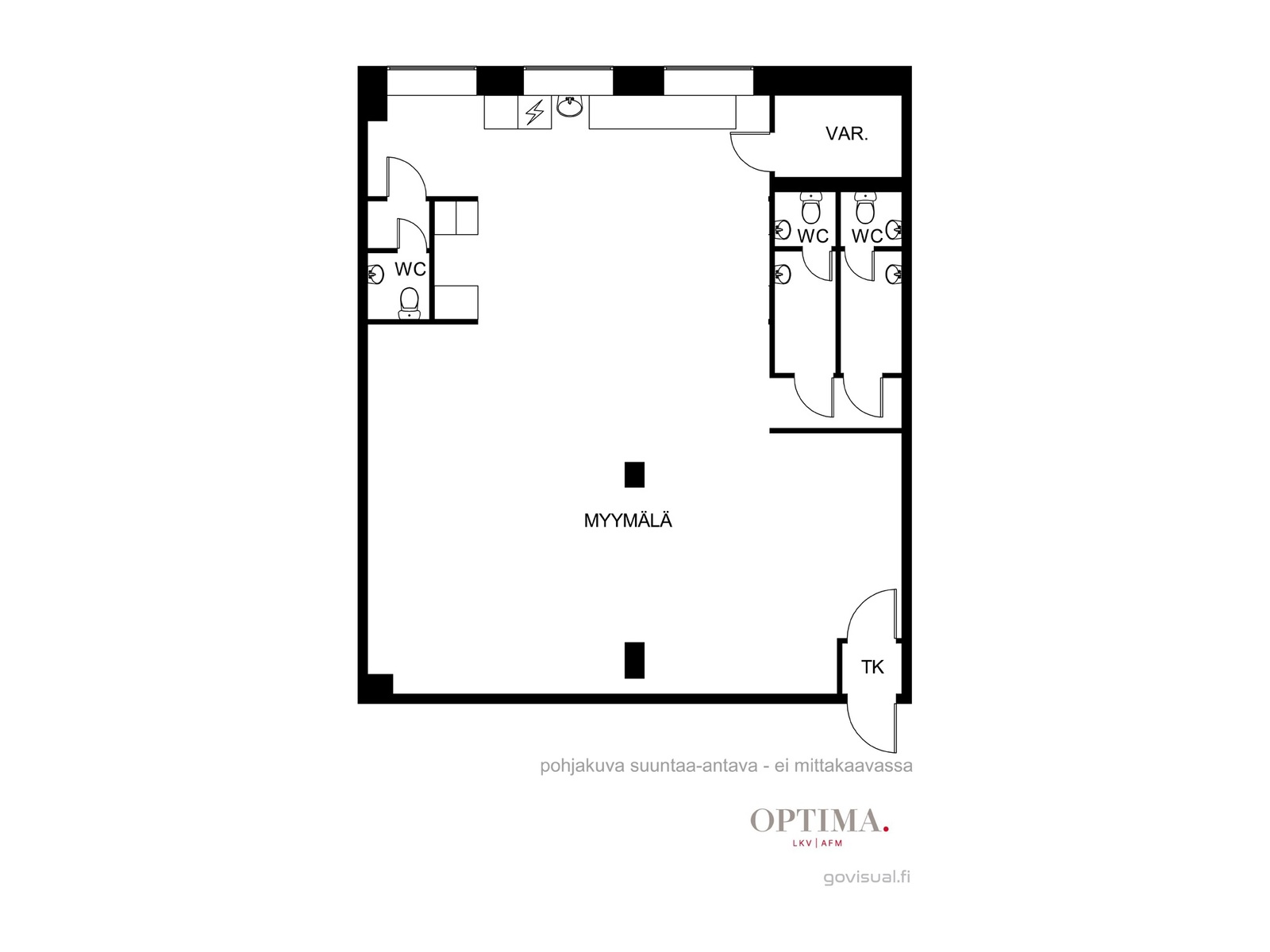 Liiketilassa on kolme wc:tä – esimerkiksi kaksi asiakkaille ja yksi henkilökunnalle – mikä tekee siitä käytännöllisen myös asiakasvirtaiselle toiminnalle.